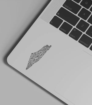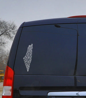 This sticker reimagines the map of Palestine as a geometric network, where countless individual lines connect to form a strong, unified shape. The design is inspired by the intricate patterns of both modern art and traditional motifs, symbolizing the unbreakable bonds of community and the complex, interconnected history of the Palestinian people. It represents strength in unity and a resilience that is both beautiful and structured.