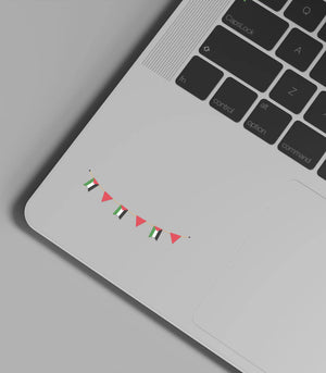 Inspired by festive garlands and celebratory banners, this sticker features a string of Palestinian flags, creating a sense of unity and collective pride [167]. It represents the spirit of community, celebration, and the unbroken chain of heritage. Perfect for decorating wide spaces like car bumpers, laptops, or shelves, this decal adds a touch of cheerful solidarity and makes a continuous, eye-catching statement.