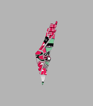 This sticker transforms the map of Palestine into a dynamic collage of cultural symbols. From the iconic keffiyeh pattern and slices of watermelon to bold artistic graphics, this design captures the multifaceted spirit of Palestinian life and resistance. Each element is woven together to create a powerful visual story of heritage, art, and identity. It’s a piece that doesn't just show the map; it shows the soul of the land.